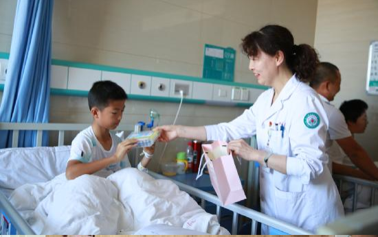 第一师医院儿科病房里充满了欢声笑语。吴燕副院长一行每到一间病房,便将精美的节日礼物送到小朋友的手上,关切地询问患儿的康复情况,并祝愿小朋友们早日恢复健康。