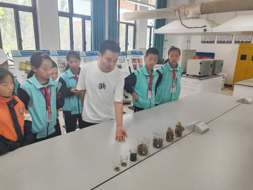 参观实验教室,体验科研氛围。学生进入生物实验室进行参观,近距离地观察种子培养,体验大学实验课程,了解生物实验的详细过程,感受科学实验的严谨性与精准性。