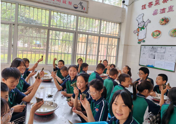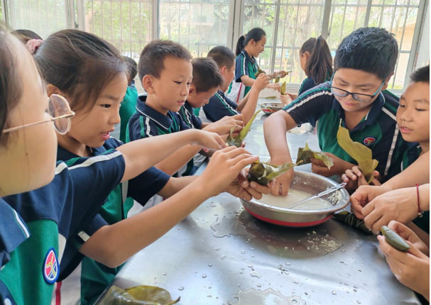 “这是我第一次包粽子,看似简单,但要做个漂亮的粽子还是需要一点功夫的。虽然没有食堂阿姨包的漂亮,但是是我亲手制作,让我真正感受到了浓浓的传统文化氛围”。五(1)班的王佑怡说。