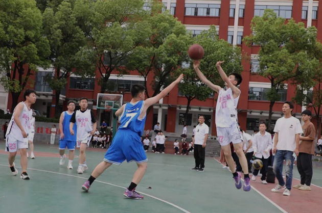 七年级篮球赛隆重热烈,精彩纷呈。运动员娴熟的运球,敏捷的跑动,绝妙的传球,精彩的盖帽,精准的投篮,给师生们带来了丰富多彩的视觉盛宴。比赛赛出了拼搏意识,赛出了团结合作,赛出了青春友谊,赛出了班级凝聚力,给同学们带来了无与伦比的快乐。