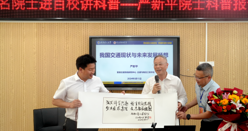 报告会结束后,严院士向金铺中学赠送了亲笔题字,并向学校科技馆赠送了科普书籍,与会师生代表回赠严院士一枚“智能交通”字样的毕昇活字印章。