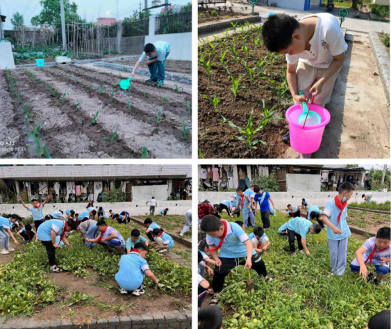 在种植专家的专业指导下,同学们对作物的健康生长充满了信心。随后的日子里,同学们每天来学校浇水、除草、捉虫,在师生们细心的呵护下,幼嫩的作物茁壮生长,充满生机。