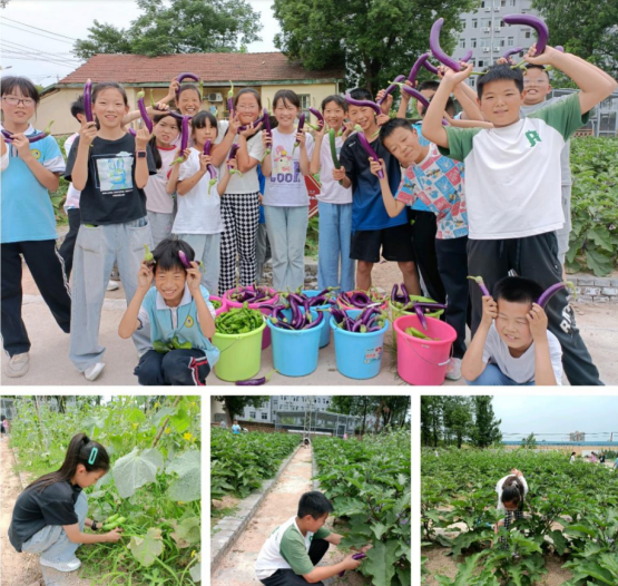 经过两个月的辛勤努力,菜园里的各种蔬菜竞相成熟,迎来了丰收的盛景。它们繁茂而绿意盎然,硕果累累,尽显大自然的繁荣与生机。同学们种的辣椒、茄子、黄瓜、西瓜、西红柿等已陆续收获,其他作物也正在茁壮成长。瞧,它们长得多好!
