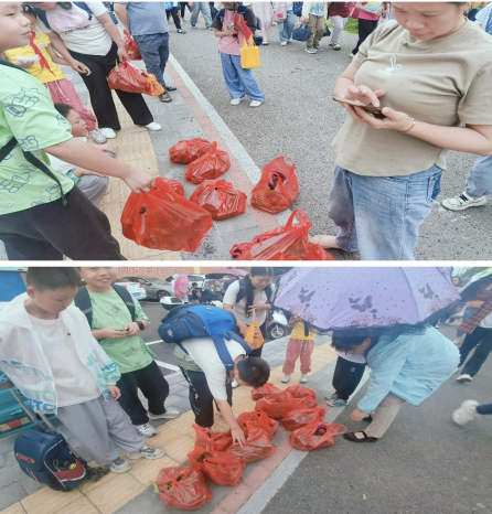 基地的蔬菜通过采摘、挑选、称重、分装被同学们拿去摆摊售卖。“走过路过不要错过啦······”放学时同学们吆喝起来,家长们循声而来,看到了热情高涨的孩子们,大手一挥一人买一袋,很快菜就被卖光了,同学们的脸上洋溢着成功的喜悦。