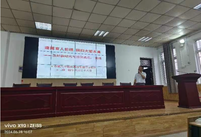 6月28日下午,安徽省肥西县教体局师德师风宣讲团走进合肥八中铭传教育集团官亭校区,开展主题为“遵循育人伦理.回归大爱本真”宣讲活动。
