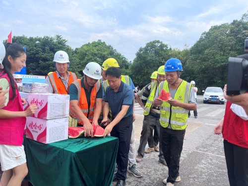 近日,烈日炎炎,酷热难耐,持续的高温天气给广安数字经济职业学院建设项目一线作业人员带来了巨大挑战。为切实做好高温季节劳动保护及防暑降温工作,7 月 19 日,广安市广安区政治协商委员会携手广安市广安区工会委员会,联合开展“夏日送清凉 关爱沁人心”新时代文明实践主题活动。