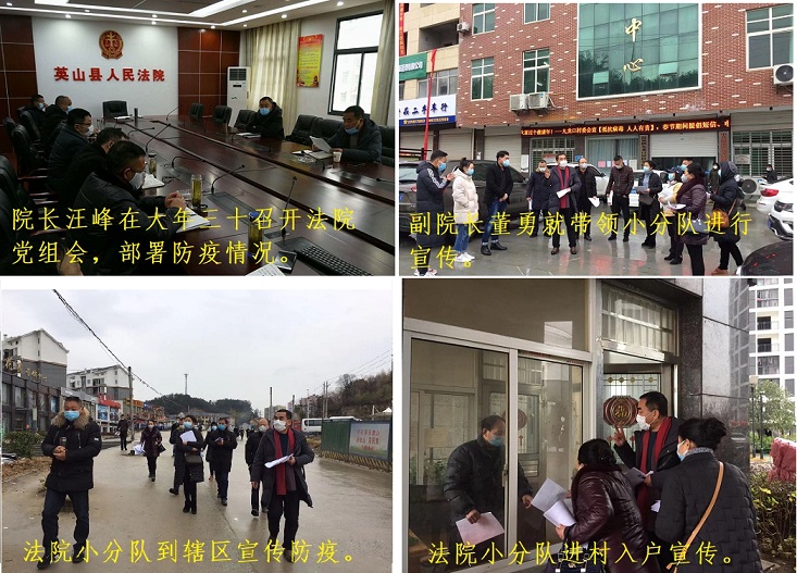 图为英山法院干警投身疫情斗争阻击战的部分现场图片。