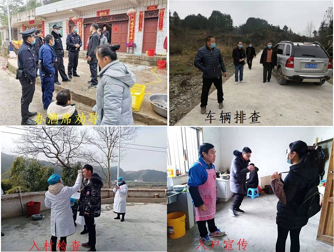 连日来,他们对辖区的各个交通路口、车站、医院、学校、村委会、文化广场、超市、菜市、农村商店、自然寨等人群密集场所展开重点巡逻。深入各村、社区开展摸排、拉横幅、张贴旧州镇暂停赶集(赶场)的通告,充分利用农村广播(苗语、汉语)、网络电视、微信等宣传、同功行动。同时还积极主动配合镇党委、镇政府、卫生院、派出所、交警支队开展人员、车辆排查、检查和上门劝导农村操办酒席等,筑成铜墙铁壁的防护墙,杜绝新型冠状病毒感染肺炎疫情入侵旧州镇的有效防控。