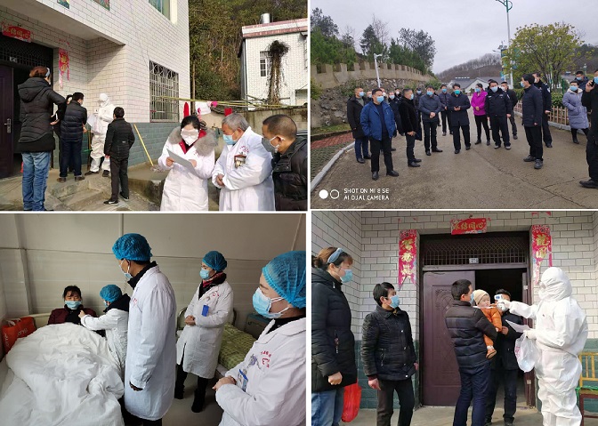 清风网讯( 通讯员 祝叶 杜林 李永存)当前正是新型冠状性肺炎病毒蔓延的非常时期,湖北英山县方家咀乡医院高度重视新型冠状病毒感染的肺炎防控工作,积极研究部署强化工作方案,逐一落实应对措施,紧张有序开展工作。该医院上下团结协作、众志成城,全力以赴投入新型冠状病毒感染的肺炎防控工作阻击战。春节期间,医院为了加强疫情防控,该医院精准细化工作方案,要求院领导、部分人员临床、医技人员和职能部门负责人提前归岗,全体休假人员按时归岗。加强防控和职工自我保护。医务科和传染病管理科负责全员业务培训。要求休假归院职工,严格按照传染病管理科要求进行返岗登记和测量体温,凡有发热症状及与武汉疫区人员接触者,一律隔离。非医务人员上班人员,每日领取口罩上岗。医院发热门诊和预检分诊人员克服困难每天24小时严守岗位。对于发热病人严格按相关诊疗规范管理,需住院或留观者必须安排一人一间单独病房,严格病史采集、严格医技检查、仔细观察疫情。通过举办防控知识培训、制作海报、设置宣传栏和屏幕滚动播放预防标语等形式,抓好各项防控工作。图为入户检查发热病人、县陈武斌书记检查疫情防控、病房检查、消毒、入户体温检测