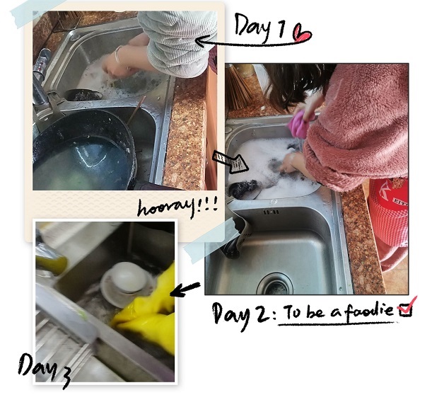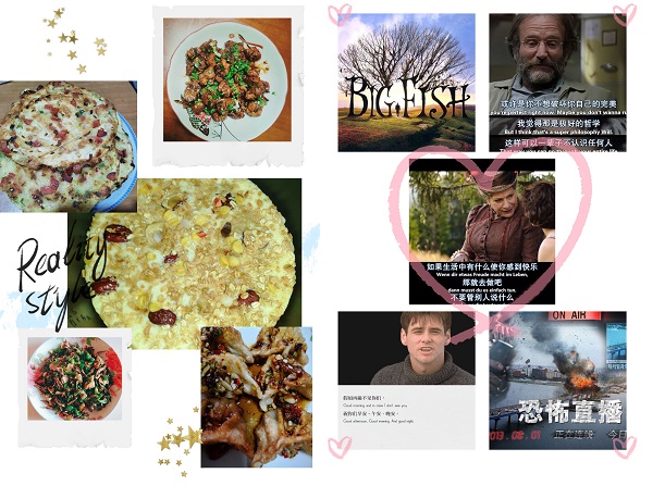 活动类型包括必选项和选修项,其中英语六级学习为打卡必选项,每日厨艺、健身X小时、早睡早起、自我激励、看书X小时、每日家务、影片推荐等为选修项。同学们可以选择一个或多个在相应群相册进行打卡,坚持打卡21天不间断者会有任务奖励。活动自开展以来,一直在如火如荼地进行。其中,王硕每天坚持健身,并在运动前后进行自拍打卡,展现运动魅力;蔡长梅等同学的早睡早起,以晚安、早安表情,坚持养成早睡早起好习惯;王嘉欣等同学的每日家务,在家帮助父母打扫卫生,洗洗衣服,为家人分忧;潘晴芝等同学进行影片推荐,每天将自己看的积极向上、优秀影片截屏分享到群中,加上个人的心得供大家学习。而每日厨艺板块,是最受同学们喜欢和挑战的项目,不仅有来自全国各地的美食,封婉婷的甘肃葱油饼、肖婕的衡阳土豆牛腩、梁金城的广东糖醋排骨等美食,还有挑战网红厨艺新项目,姜雯洁、王欢做出了独具特色的网红蛋糕,他们通过每天晒出自己的厨艺,展现另一个自己。