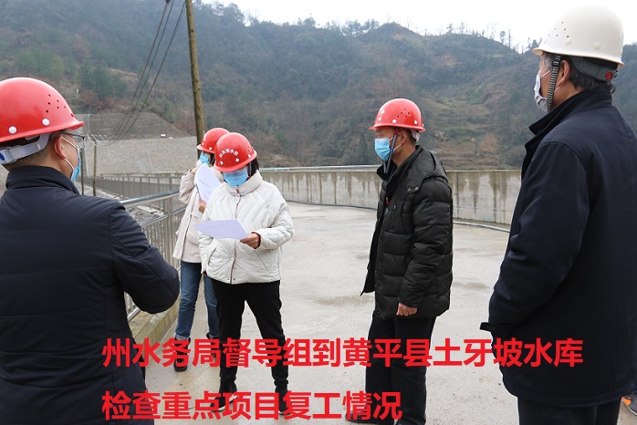 清风网讯(黄平县水务局 潘虹)为全面做好疫情防控和复工复产“两不误”,2月21日上午,黔东南州水务局党组成员、副县级干部袁晓青率队先后到黄平县土牙坡水库、旧州印地坝水库实地督导疫情防控期间重点水务工程复工复产工作。