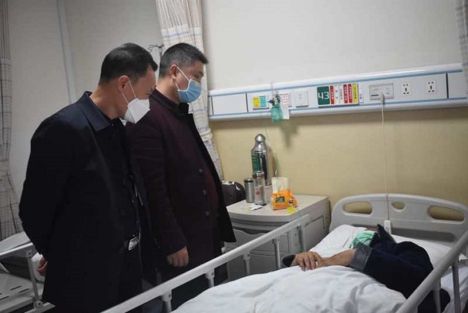 图一:市乡村医生协会负责人在邵阳市中心医院慰问刘建国