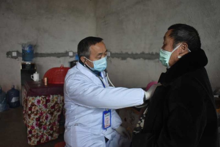 图二:黄建刚上门给村里群众体检