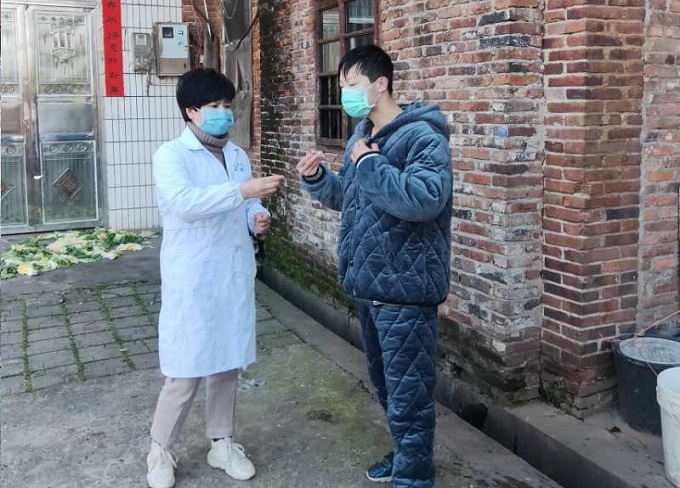图四:冉青华上门给群众监测体温