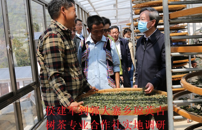 在琼英村,侯院长深入实地调研了琼英古树茶专业合作社,听取了负责人汇报合作社运营情况。并查看了琼英古树茶生产加工过程、茶叶种类,查看过程中,侯院长与在炒茶的建档立卡户亲切交谈,询问了农户在合作社务工的全年收入、入股情况等。同时,侯院长亲自制作了2饼琼英古树茶,听了“竹筒春雷茶”的传说故事,品尝了“竹筒春雷茶”。随后,侯院长要求,琼英村合作社1/46古茶是好品牌,要保护好宣传好,以兰花等庭院经济作为副加产业,打造郭大寨品牌。
