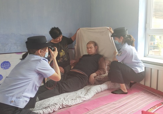 5月初,派出所民警在入户宣传户籍政策时,发现辖区寨牛录村残疾人士伊某未办理过身份证。经了解,伊某自小瘫痪,一直卧病在床无法行走,因未办理居民身份证导致无法享受办理残疾证和社保等各项国家惠民政策,其家人也因文化程度较低,一直未寻求解决方法。了解到此情况后,派出所民警主动来到伊某家中,为其采集信息、办理身份证。因伊某常年瘫痪,无法站立,采集人像信息时灯光、脚架等设备均派不上用场,户籍民警只好站在床上为其照相,耐心为其引导和调整姿势,从而成功采集到了人像信息。待其身份证件办理成功后,派出所民警还将帮助其申请办理残疾证和社会保障卡。