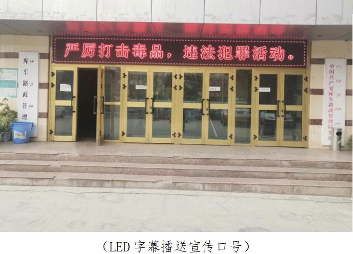 结合线上线下活动开展,库车路政管理局干部围绕今年“禁毒宣传月”、“6.26”国际禁毒日为主题分别制作书漫画类作品3幅;与此同时,充分利用LED字幕设备播送禁毒口号两条,当日分别播送时长4小时。