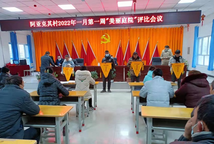 1月17日,阿亚克其村举行了表彰仪式,对评选出8户家庭环境整洁干净的家庭颁发了流动红旗及奖品,对评选出4户环境卫生差的家庭发放了黄色流动旗。会上,村党支部书记对人居整治工作再宣传、再发动,组织村民在整理自家庭院、美化生活环境,让每位村民树立起“美丽庭院”荣誉感,营造家家争当“美丽庭院”示范户的浓厚氛围。受表彰的“美丽庭院”示范户纷纷表示,一定会珍惜荣誉,带头从家庭做起,弘扬文明风尚,建立科学文明的生活方式,推进美丽乡村建设。