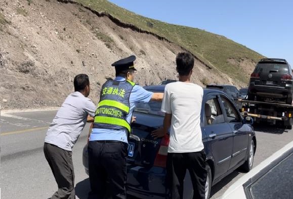无惧“烤”验,察布查尔执法大队 道路救援忙