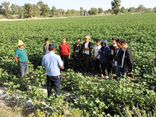 大爷,现在电信诈骗套路多,咱们辛辛苦苦赚的血汗钱千万不能叫骗子给骗走了啊!近期,沙雅县公安局反诈宣传小分队深入田间地头,开展全民反诈宣传活动。