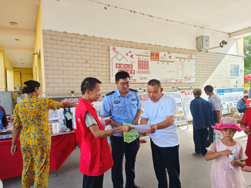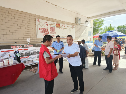 8月8日11:00,九团五连“两委”及派出所民警,在“巴扎”人流量最大的中心市场设置交通安全宣传版面,由九团五连安全员及派出所民警为辖区群众现场讲解交通安全知识及交通事故案例,连队“两委”同志发放宣传单并讲解相关知识政策。