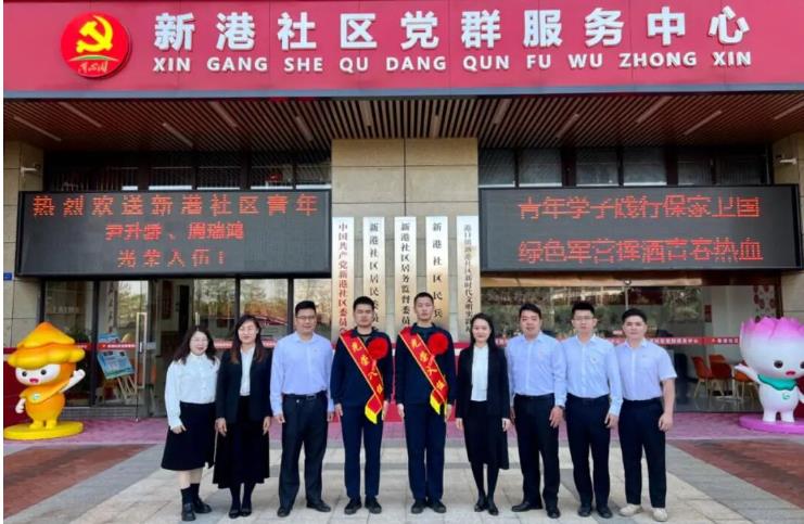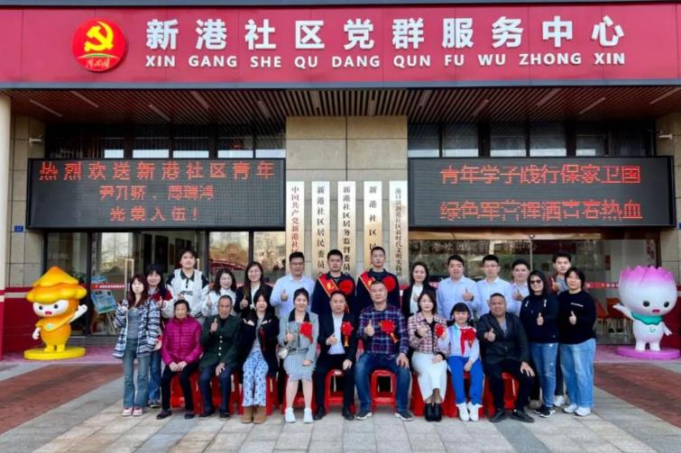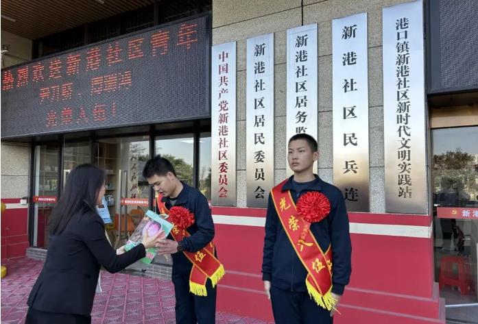 仪式现场,新港社区“两委”干部为新兵们佩戴光荣花,表达对他们的敬意和期望,新兵家属们为两位新兵送上鲜花和祝福,大家欢聚一堂,合影留念,留下了珍贵的回忆。