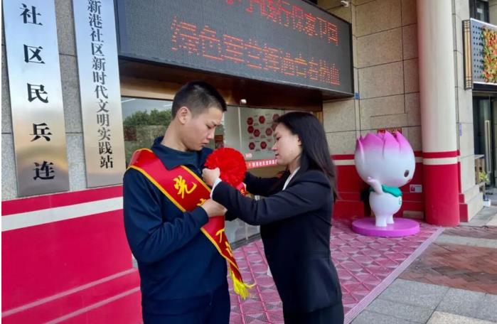 在新兵奔赴军营之际,新港社区党委书记廖诗帆真情寄语,鼓励两位新兵要坚定地履行军人职责,不忘初心,牢记使命,争做有灵魂、有本事、有血性、有品德的新一代革命军人,同时也向积极送子参军的家长们表达了崇高的敬意。